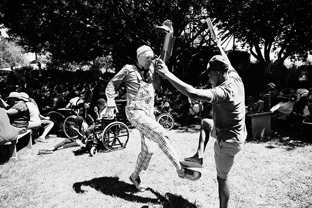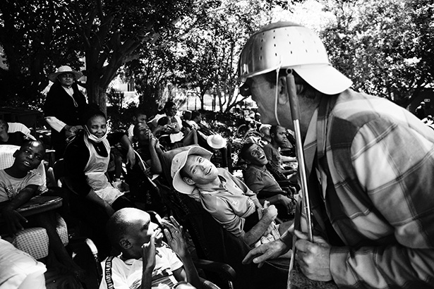 Kinderen en volwassenen weer laten lachen: dat is het doel van de Africlowns. De Nederlandse Willem Hans Elbrecht, Peter Vrinds en Jans Koopmans vertrokken dit jaar voor de elfde keer naar Zuid-Afrika als de clowns Pluum, Puk en Bluf. Fotograaf Christi Sa maakte opnieuw een beeldverhaal van de vele voorstellingen die de Africlowns organiseerden in Johannesburg.