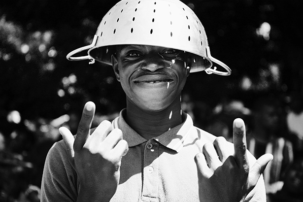 Tijdens de voorbereidingen van de tour, las ik een boek over Johannesburg van schrijfster Barbara Adair. De zin "Happiness is a clownish condition" bleef tijdens het lezen al in mijn hoofd zitten. Bij het fotograferen van de Africlowns moest ik er vaak aan denken. Een lach is immers toch een reden om je gelukkig te voelen: of dit nu is omdat je zelf moet lachen of omdat je een ander ziet lachen. De hele week liep ik rond met het woordhappiness in mijn hoofd.Hoe verschillend we ook zijn, een clown kan ons toch heel even laten lachen en ons vooral ook een stukje geluk doen voelen.