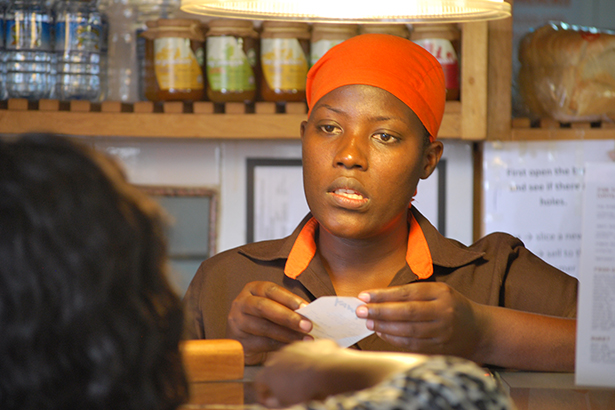 Door trainingen te geven probeert Lotte haar kassamedewerkers te laten zien hoe ze met klanten moeten omgaan, hoe ze het best brood kunnen bewaren en welke feitjes over brood interessant zijn. “De meesten begrijpen niet waarom je een klant het naar de zin moet maken. ‘Wat verdien ik daar extra mee?’, wordt dan gezegd. Het levert voor hen niet meer salaris op.” Richard denkt dat het komt omdat de Oegandese winkeliers dit ook niet doen. “Ze weten toch wel dat de klant de volgende keer terugkomt. Het gaat om het product en niet om de service.”