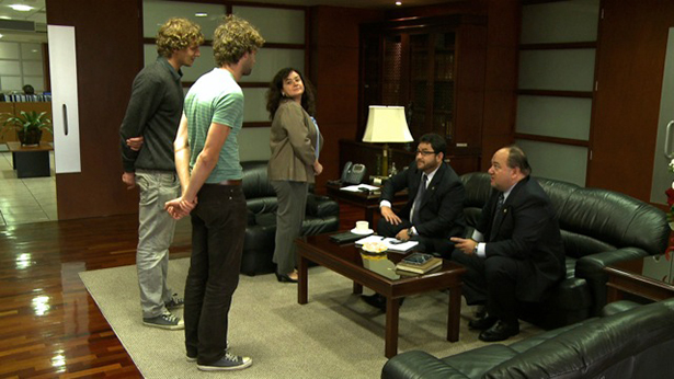 Op de vooravond van de dag van de democratie staat Den Haag in teken van ‘De nacht van de dictatuur’. In een bescheiden filmzaal in het centrum van de stad tonen Joey Boink en Sander Wirken deze avond fragmenten van hun documentaire. “Claudia Paz y Paz laat zien dat je wel degelijk iets kan veranderen in een ‘gefaalde staat’ als Guatemala.” Joey Boink, één van de makers van ‘Burden of Peace’, is kalm maar stellig. “Ik hoop dat onze film mensen inspireert.”