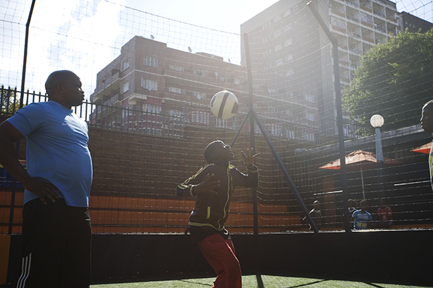 John Sibeko werd door het programma WorldCoaches van de KNVB opgeleid en aangesteld als hoofdcoach van het Cruyff Court in Hillbrow. “In het begin liep het wat moeizaam”, zegt Sibeko. “De kinderen waren continu aan het vechten en konden niet met regels en gezag omgaan. De eerste zes maanden na de opening dacht ik dat ik op de verkeerde plek was. De kinderen namen niets van mij aan. Veel kinderen komen uit een gezin met problemen, waar ze geen regels kennen. Dan komen ze op een voetbalveld en moeten ze opeens luisteren naar mij. Ik kan me voorstellen dat dit lastig is. Voor ons was het ook zoeken naar de juiste balans. Langzaam ging het beter en nu hebben we een goed werkend systeem.”