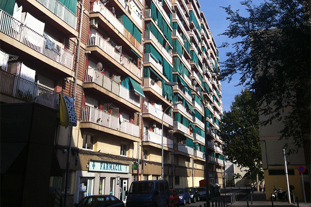 Huizenblokken van tussen de vijf en twaalf verdiepingen doemen in de verte op zodra je de metro bij Besòs Mar uitloopt. Het pleisterwerk op de gebouwen barst overal open en de rolluiken voor de ramen zijn potdicht. Het doet denken aan de buitenwijken van een willekeurige stad in de Sovjet-Unie. Wie de wijk inloopt krijgt het idee dat hij een stedelijke jungle betreedt. De straten zijn bezaaid met afval. Containers voor huisvuil worden opengehouden met houten balken, de pedalen om ze te openen werken niet meer. De gemeentelijke opruimdienst komt hier nauwelijks. Op de Carrer de Mart loopt een kromgetrokken mannetje met een stapel gebrande cd’s, inclusief korrelig geprinte hoesjes. Hij verkoopt ze voor twee euro per stuk. De speelplaats iets verderop is vrijwel leeg. Er staat alleen nog een wipkip. Waar ooit de andere toestellen stonden zitten nu gaten tussen de rubbertegels.