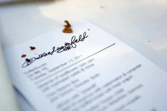 Outstanding in the field is in 1999 bedacht door kunstenaar en landschapsarchitect Jim Denevan. Hij creëerde een manier om mensen te laten zien waar hun eten vandaan komt en om lokale boeren te eren. Het is een culinair avontuur. Letterlijk...