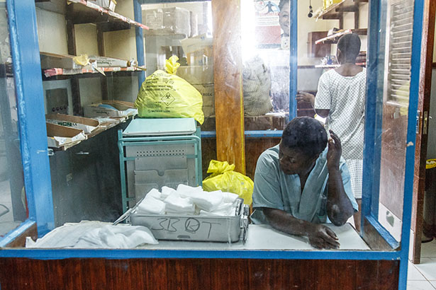 Twee jonge zusters kletsen zacht terwijl ze wondgaas tot een netjes pakketje vouwen. De stapels stof verdwijnen in een ijzeren bak die op de tafel staat. “We verbruiken hier zoveel van”, legt een van de zusters uit: “elke dag vervangen we het verband en leggen we nieuw materiaal op de wond”. De ander legt uit: “dan moeten ze huilen. Het doet veel pijn want de huid blijft plakken aan het gaas”.