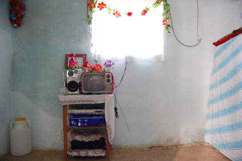 Een van die huisjes, bestaande uit drie stenen muurtjes en een zeil aan de achterkant, wordt bewoond door een gezin van vier mensen. De man van het gezin is herder en loopt met het vee door de heuvels van het Marokkaanse dorpje Ainalkhil. De vrouw des huizes, klein en traditioneel gekleed, wijst vrolijk de weg in de drie kamers die het onderkomen telt. De woonkamer is zo goed als leeg. Er ligt een tapijt, wat kussentjes en sinds de komst van het zonnepaneel staat er een tv’tje en hangen er twee spaarlampen.