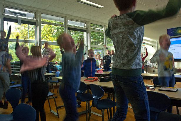 “Nog maar twintig punten verschil!”, zoemt het zenuwachtig door het schoolgebouw. Via tablets volgt de klas realtime de stand. Leerlingen rennen door de buurt op zoek naar de allerlaatste apparaten. Om halftien is er niets meer te vinden. Het lange wachten tot 10 uur begint. Tot de winnaar een verlossend telefoontje krijgt van Tim. In de klas is de sfeer elektrisch. Het contrast met de rust buiten, waar bomen hun prachtige herfsttooi tonen in de zon, is groot. De kinderen schuiven nerveus over hun stoel. Langzaam tikken de secondes weg. Is de inzet van de leerlingen voldoende?