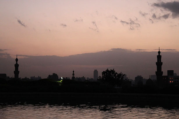 De rivier de Nijl is de aorta van Caïro. Er is een bekend gezegde dat wanneer je van de Nijl drinkt op je eerste bezoek in Caïro, je altijd terug zal keren. Op de brug van het Tahrirplein naar het Operahuis op het eiland Zamalek is het uitzicht  adembenemend. Iedere dag maken hier talloze jongens meisjes van het hof. Er zijn plastic stoelen uitgestald op de stoep bij kraampjes waar geroosterde noten worden verkocht. Wanneer je hier neervlijt zie je de wereld aan je voorbij trekken, terwijl er onder je langs allerhande felluca’s voorbij komen gevaren waar luide Arabische popmuziek, shaabi, vanaf schalt.