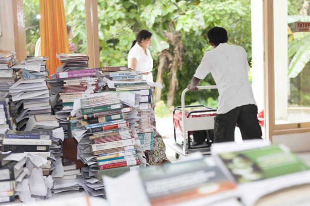 Ambon is geen leeseiland. Ze hebben bijna geen tijdschriften en studieboeken worden zelden gebruikt. “Wat hebben we nou aan boeken die we niet kunnen gebruiken, we kunnen ze toch niet eten?”, zegt rector Agus Batlejery van de Christelijke Universiteit Ambon. Toch vreemd, als je bedenkt dat ze 40.000 gratis studieboeken hebben aangenomen van de Universiteit van Wageningen. Die boeken liggen nu in een hoek van de bibliotheek op een bult weg te rotten.