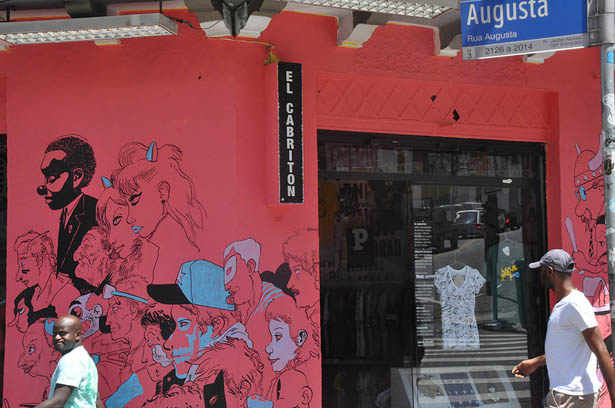 Dergelijke projecten zijn de stad niet vreemd. T-shirtwinkel El Cabriton bestaat pas drie jaar, maar iedereen uit São Paulo onder de dertig jaar kent de kleine winkel aan de Rua Augusta. De oude eigenaar van het pand stopte met zijn winkel omdat hij niet meer mocht adverteren op zijn gevel aan de drukke straat. De huidige eigenaar besloot om op een andere manier de aandacht van het winkelende publiek te trekken. Iedere maand nodigt de winkel een andere graffiti-artiest uit om de gevel van een nieuwe look te voorzien. “De artiesten komen uit alle staten van Brazilië. Zelfs grote Braziliaanse kunstenaars als Rafael Coutinho bieden zichzelf aan. “Ze sturen hun portfolio en wij kiezen vervolgens een artiest die onze gevel mag voorzien van graffiti”, vertelt een verkoopster terwijl ze een stapel T-shirts op kleur sorteert. “Sommige mensen kennen de winkel alleen van de graffiti. Voor ons is het gratis reclame. Wij zitten op een strategische plek in de stad, iedereen komt er langs. Dankzij de graffiti vallen we op.”