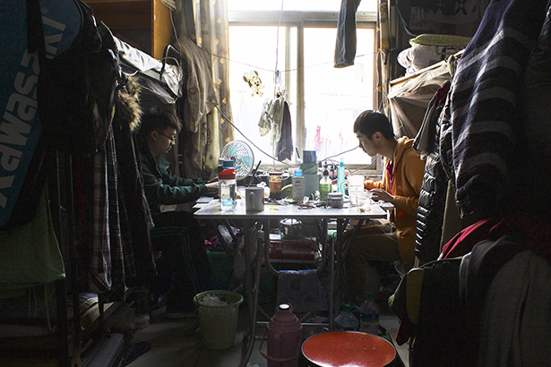 Een buitenwijk in het zuiden van Beijing. In een vervallen gebouw verdeelt een slecht verlichte gang ongeveer 24 wooneenheden. De aan het plafond hangende was doet door de schemering aan als een kolonie slapende vleermuizen. De vloer is viezig. Zo...