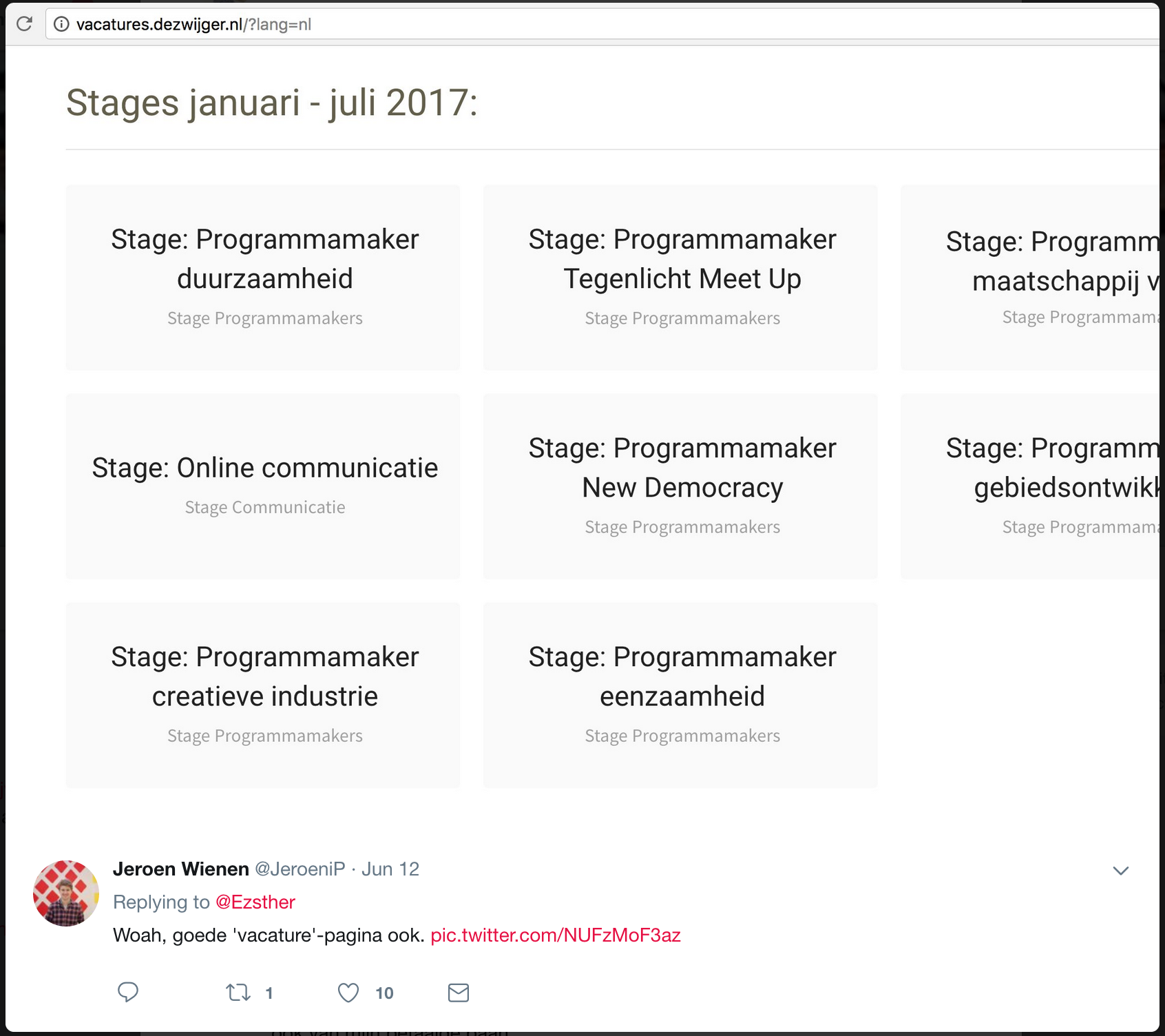 Het is dan ook niet duidelijk of de Inspectie SZW een goed overzicht heeft van de situatie rond werkervaringsplekken. Toch staan de stagiairs steeds meer in de aandacht. Tv-programma De Monitor deed uitgebreid onderzoek en ook FNV Jong is actief in het aankaarten van misstanden. Zo is er een meldpunt voor stages ingesteld. Onlangs startte Esther Crabbendam, voorzitter van FNV Jong, de blog Stageleed. Mijn stagebedrijf, cultureel platform Pakhuis de Zwijger, werd als eerste besproken op twitter. Minister Asscher reageerde via twitter dat de stage-omschrijving inderdaad niet voldoet aan de standaarden, maar dat het uiteindelijk gaat om de "feitelijke inrichting" van de stage. En zoals de Inspectie SZW beaamt, wordt naar die feitelijke inrichting pas onderzoek gedaan als er klachten binnenkomen.