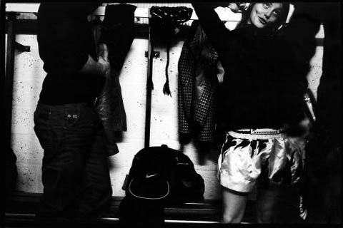 Het enige meisje in een kleedkamer vol mannen