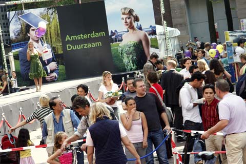Duurzaam hip zijn, dat promootten zo’n 25 bedrijven en kennisinstellingen afgelopen zaterdag in Amsterdam. De marketingcampagne trok aandacht met luide muziek op het plein voor de Beurs van Berlage. Er was een modeshow voor duurzame kleren, duurzame sapjes en Fair...