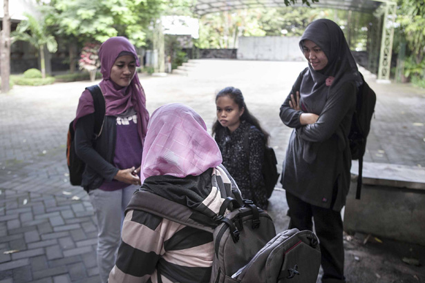 Mira woont samen met haar vijf jaar jongere zus Uzin Akrim in een kleine studentenkamer in Yogyakarta. Uzin zit in kleermakerszit op de grond in de benauwde, vochtige studentenkamer van de zussen. “Nee hoor, ik woon niet samen met Mira om voor haar te zorgen”, vertelt Uzin met een glimlach op haar gezicht. Mira komt lachend de kamer binnen met grote koppen zoete thee. “Haha, je hoeft niet voor mij te zorgen hoor zusje, dat kan ik zelf wel”, zegt Mira vrolijk, terwijl ze gaat zitten. “Mijn zus is een onafhankelijk persoon en heeft gelukkig geen hulp nodig, toch vinden mijn ouders het een prettig idee dat wij samenwonen zodat ik Mira gezelschap kan houden”, legt Uzin uit.