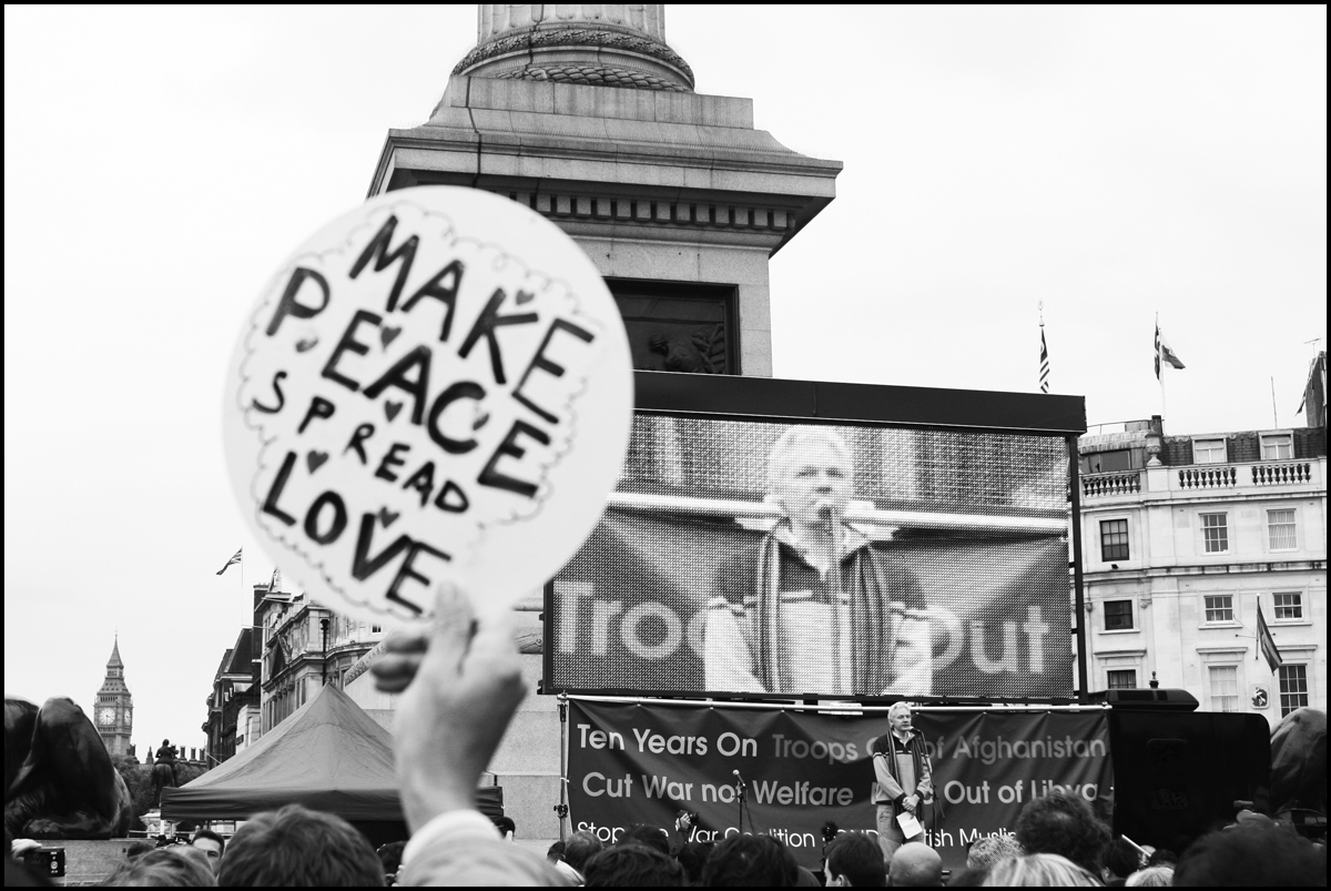 Julian Assange, de oprichter van de klokkenluiderwebsite Wikileaks, sprak dit weekend in Londen op Trafalgar Square bij een demonstratie tegen de oorlog in Afghanistan. Assange staat onder huisarrest in Groot-Brittannië, waar hij in beroep ging tegen zijn uitlevering aan Zweden....