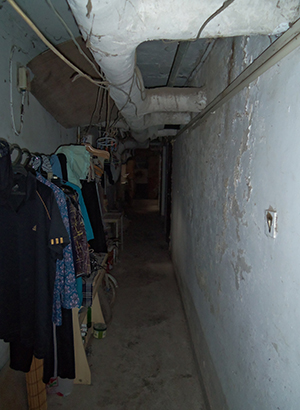Buiten voor de ingang van de kelder zit een vrouw groente te snijden. Zij woont beneden. En zij wil haar naam niet noemen. Wel zegt ze in de dertig te zijn. “Mijn kamer beneden is eigenlijk van mijn broer. Hij is rijk en woont in het centrum van Peking. Ik mag hier van hem met mijn man en kinderen wonen. Gelukkig is het maar tijdelijk!” Ze heeft met haar man lang op het platteland gewoond, maar is inmiddels teruggekeerd naar Peking omdat ze daar haar Hukou status (document dat sociale voorzieningen garandeert voor de houder) heeft en hun zoon daar dus gratis onderwijs krijgt. “Mijn man is taxichauffeur en werkt ’s nachts. Omdat hij overdag slaapt is het voor ons erg moeilijk om hier te leven. We hebben maar één ruimte en moeten altijd stil doen.” Gehorig zijn de kelders inderdaad. Wanneer je in de gang staat zijn achter iedere deur de gesprekken luid en duidelijk te verstaan. “Ik ben wel tevreden met de woonomstandigheden hoor. Bij ons lekt het ten minste niet en wij hebben geen last van ratten. Ik ben alleen soms bang voor vreemdelingen. Die kunnen hier immers ieder moment binnenkomen omdat er geen centrale deur is.”