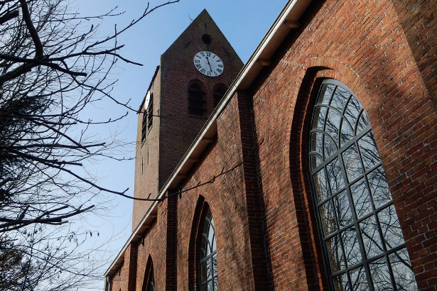 Tegenover Olde Heem loopt Hilderink een kerk binnen. Vrijwilliger Ed Vastenouw staat met een bezem in zijn hand de muren te boenen. Aannemer Niels Kloppenburg komt erachteraan met een spuit vol vloeibaar leem, aangesloten op een draaiende betonmolen. Hij ontwikkelde deze methode zelf, om muren duurzaam te isoleren. Tegen het leem aan plakt hij later vandaag dikke blokken kalkhennep. Dat is hard nodig, want nu moeten ’s winters voor dorpsraadbijeenkomsten of filmavonden de oude kerkkachels nog twee dagen lang staan loeien, vertelt Hilderink. “En dan nog heb je koude voeten!” Een efficiënte kachel verhit straks een nieuwe vloerverwarming met hout uit de naast het terrein gelegen houtafdeling van de gemeente, zoals Hilderink al langer van plan was.
