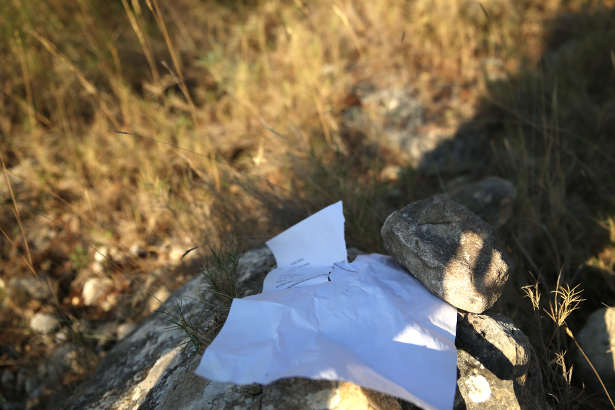 Document with contactdata for migrants who cross the border illigaly via El paso del morte, the path of death in Ventimiglia/Menton. Foto: Geesje van Haren