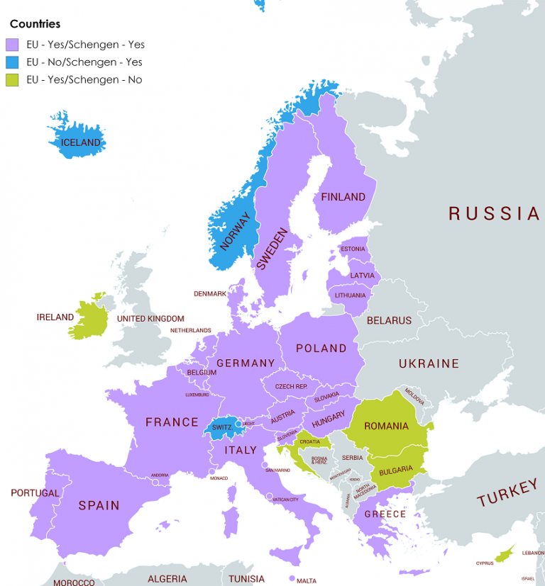 Our investigation started simple: with a map. As not all EU countries are Schengen countries, we needed to make a clear division between countries that are part of both the EU and Schengen.