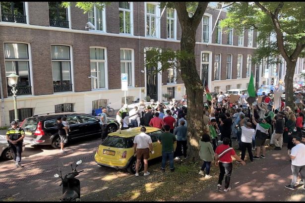 Zo’n 300 meter verderop wachtte een minder warm onthaal voor de nieuwe Pakistaanse ambassadeur. Op de Amaliastraat, de locatie van de Pakistaanse ambassade, verzamelde zich een menigte van tientallen demonstranten. Zij scandeerden leuzen als “Pakistan terrorist!”, “Pakistan Taliban!”, en “Pakistan weg uit Afghanistan!”. Ook riepen de demonstranten op om Panjshir te redden.
