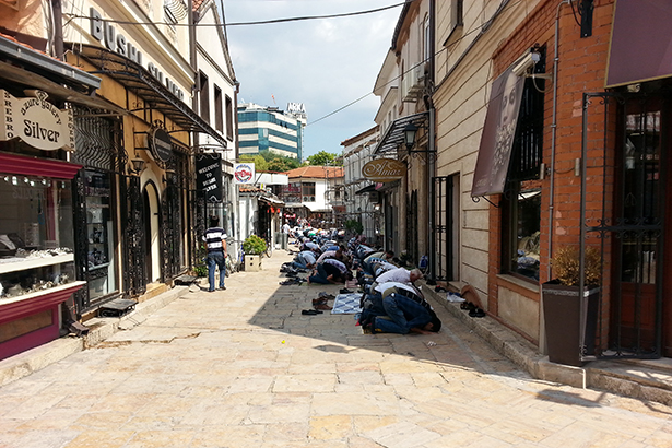 Het is vrijdagmiddag en rustig op straat. Totdat de elektrisch versterkte gebedsoproep van de muezzin door de straatjes schalt. Het contrast met het kitscherige centrale plein is groot, helemaal wanneer er tientallen mannen hun gebedskleedjes neerleggen in een smalle zijstraat en zich eendrachtig op hun knieën richting Mekka buigen.