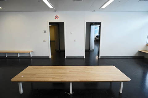 Vreemdelingen die teruggaan naar het land van herkomst, brengen de laatste drie uur van hun verblijf in Nederland door in het Verwijdercentrum. Dit doet denken aan de kleedlokalen van de gymzaal. Het is een sobere, witte ruimte met alleen zitbanken erin.