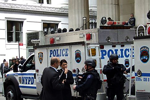 Op 42nd street, bij Times Square, rijst de vraag is of de New York Police Department (NYPD) of misschien wel de FBI of de CIA niet undercover werk doet in deze drukbezochte straten. Politieagenten zijn er sporadisch aanwezig. Die staan er een aantal straten verderop wel, op Rockefeller Plaza. Daar bewaken vijf agenten in uniform het plein met een geweer dat groter is dan een gemiddeld driejarig kind.