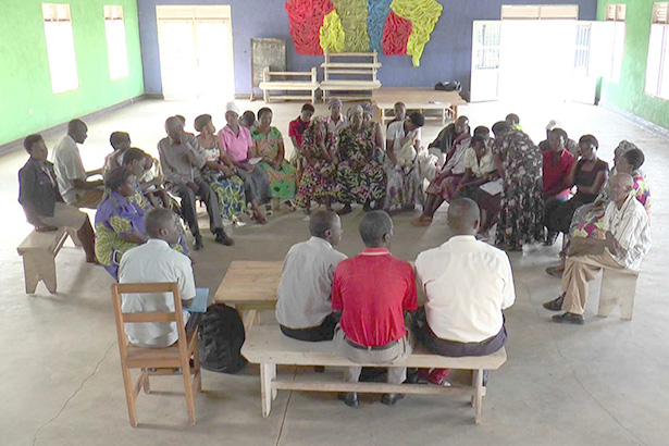 Elke woensdagmiddag komt de praatgroep in Kinyinya in een grote zaal bijeen. Hatangimana begint het gesprek met een gebed, een verhaal uit de bijbel of een actueel onderwerp uit de krant. Ongeveer dertig mensen zitten op banken en luisteren. Het zijn oude vrouwen in lange, kleurrijke kleding en jonge meisjes in spijkerbroeken. Mannen die iemand hebben vermoord naast vrouwen die werden verkracht. Iedereen die zijn ervaring wil delen, mag opstaan en zijn verhaal doen. Het is stil. Hatangimana en de anderen luisteren als iemand aan het woord is. “Het is niet mijn taak om te oordelen”, zegt hij als de deelnemers weg zijn.
