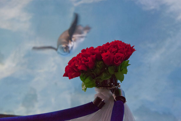 Uit heel Manilla had de pers zich verzameld in Ocean Park om de plechtigheid te vereeuwigen. Enige teleurstelling kwam op toen bleek dat niet het echte pinguïnpaar de ceremonie ging voldoen, maar twee acteurs in pinguïnpak. Scarlet en Kenjie waren wel te bewonderen achter het glas in hun rijkelijk versierde hok.