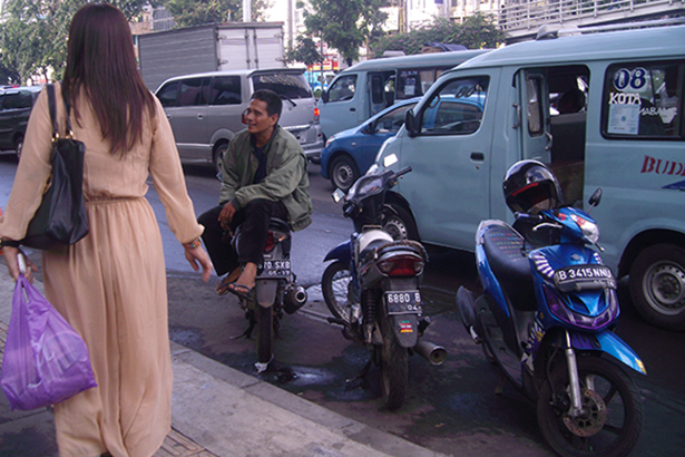 “Ik neem voorbijgangers mee op mijn scooter. Mijn huis. De straat is mijn tuin”, vertelt Anwar serieus. Het enige waar hij geld aan hoeft uit te geven is de benzine en wat te eten. Ondanks zijn lage uitgavenpatroon, houdt Anwar niks over. Hij verdient op drukke dagen twee euro per dag, 30.000 rupiah. Dat klinkt veel, maar als je na gaat dat een flesje water 8.000 rupiah kost, is het moeilijk rond komen. “Als mijn scooter kapot gaat, weet ik niet wat ik moet doen. Ik wil wel geld sparen, maar als ik geen honger wil hebben, kan ik dat niet doen.”