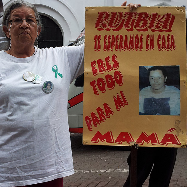 Maria Elena Torro houdt een foto van haar zoon stevig in haar handen. Met tientallen andere moeders zingt ze haar protestlied, voor een witte kerk in Medellin. De Madres de la Candelaria willen aandacht en erkenning voor hun verdwenen familieleden. En met resultaat.