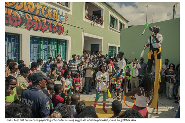 Escola Satellite, een jeugdcentrum dat momenteel 67 kinderen voor of na schooltijd opvangt is inmiddels een begrip in Tira-Chapéu. De kleurrijke school steekt af tegen de grauwe, stoffige straten en gebouwen en wordt beveiligd door een hoog hek. Kinderen hangen uit de ramen van hun vertrouwde lokalen, die uitkijken op het binnenplaatsje van de school. Naast hulp met huiswerk en psychologische ondersteuning krijgen de kinderen percussie, circus en graffiti lessen. ‘’Veel kinderen worden door alleenstaande moeders opgevoed die meerdere banen hebben om met het gezin van rond te komen. Voorheen bleven deze kinderen alleen thuis en hingen rond in de wijk. Een omgeving waarin zij kwetsbaar zijn voor negatieve invloeden’’ vertelt Manuel Gonçalves, begeleider op de Escola Satellite. Gonçalves was betrokken bij de oprichting van de school en werkt dagelijks met de kinderen: “Sommige kinderen komen uit moeilijke, agressieve situaties en hebben deze begeleiding echt nodig.’’