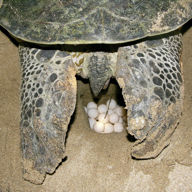 Als de zeeschildpad bij haar geboortestrand is aangekomen en voor de kust is bevrucht, begint het meest gevaarlijke gedeelte. Op het land is zij helemaal bijzonder kwetsbaar. Ze is traag, haar enorme gewicht moet ze met zwemflippers voortslepen. En op land heeft zij geen verdedigingsmechanisme. Een voorwaarde om aan land te komen is dat het aardedonker en volledig stil is. Dat is haar enige kans om ongestoord en ongezien een nest te graven en eieren te leggen. Haar nest beschermd ze tegen prooidieren door de sporen van en naar zee uit te wissen. Volledig uitgeput van de reis en het nesten keert ze vervolgens terug naar haar vaste voedingsgebied. Eens in de twee tot vier jaar herhaalt de zeeschildpad deze reis vervolgens. Haar hele leven lang.