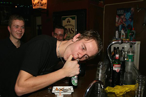 Dirk ziet eruit als een gezonde Hollandse jongen. "Nu wel, anderhalf jaar geleden was ik een uitgeteerd mager scharminkel." Zijn maatje Sjoerd komt erbij staan. Ook hij was jaren aan de drugs. "Maar toen ik zag wat het met Dirk deed ging er bij mij een knop om en zijn we samen afgekickt." In tegenstelling tot Dirk is hij wel een stevige drinker. "Op een uitgaansavond drink ik tien tot vijftien Berenburg-cola, maar ik word niet snel dronken. Dat gebeurt pas na anderhalve liter Berenburg. Zelf heeft Sjoerd nog nooit zoveel gedronken dat hij de controle kwijt raakte. "Maar ik ken wel vijf mensen die hun maag hebben moeten laten leegpompen. Die eten vaak niet van tevoren, dat is erg dom. Ik zorg altijd dat ik goed eet en dan kan ik veel hebben."