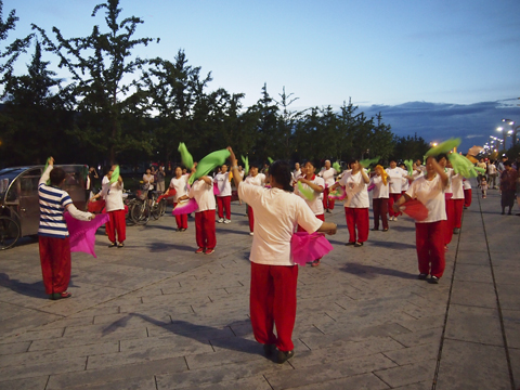 In de schaduw van Pekings beroemde Olympische stadion rennen kleine kinderen glimlachend hun witte vliegers...