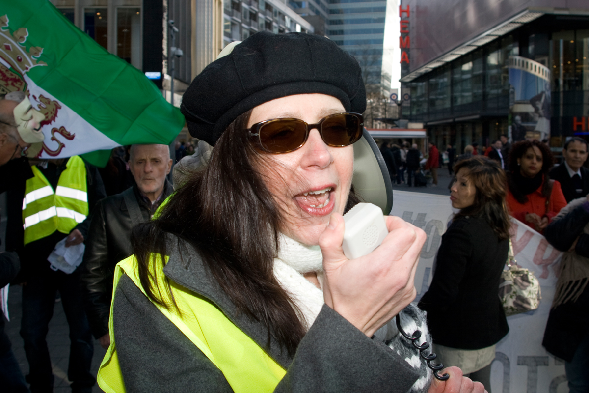Mensenrechtenactivisten spraken afgelopen zaterdag de menigte toe bij een demonstratie bij de Syrische ambassade in...